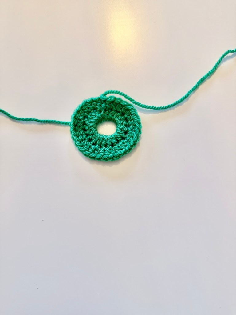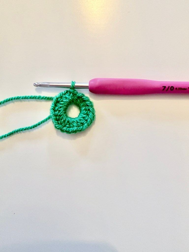 To begin, I made a magic circle in my chosen wreath colour.