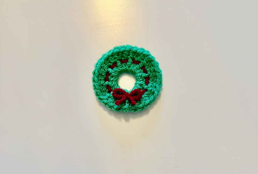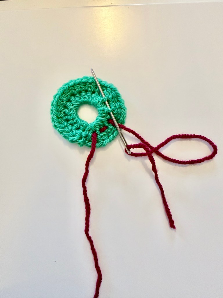 I made 7 wreaths for my garland. Once you have completed the wreath, darn in your ends as we don’t want it to unravel!